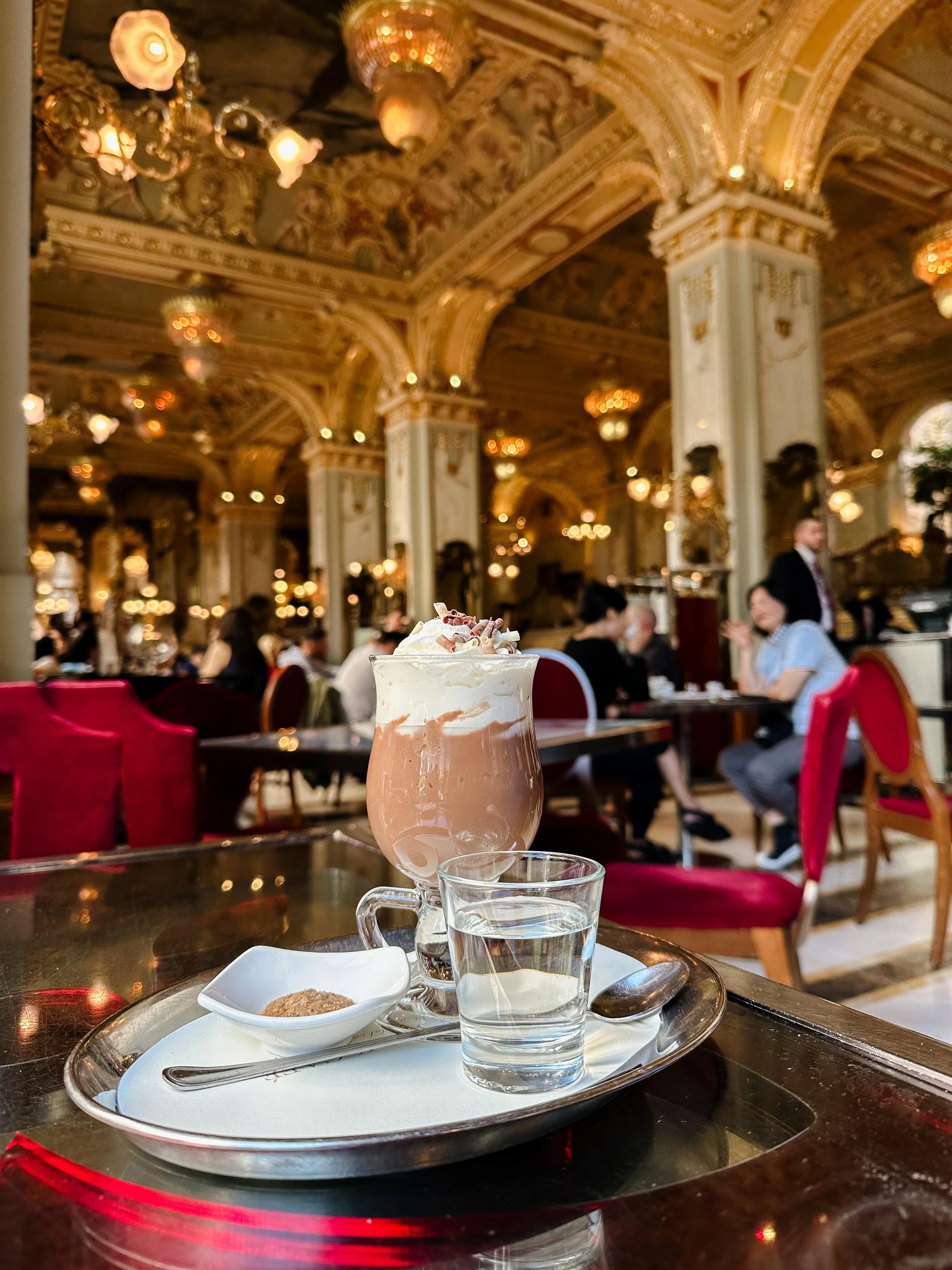 Despite waking up the next day still not feeling 100%, I decided to carry on with my personal walking tour. In the morning, I was determined to secure a seat at what is known as the most beautiful cafe in the world—The New York Cafe. A couple of hours later (blame my sluggish pace due to illness), I found myself in a room that exuded regal opulence, with soaring ceilings, red velvet, and gold accents everywhere. The cafe lived up to its reputation with the best damn hot chocolate I've ever tasted (possibly even better than the one in Amsterdam)!