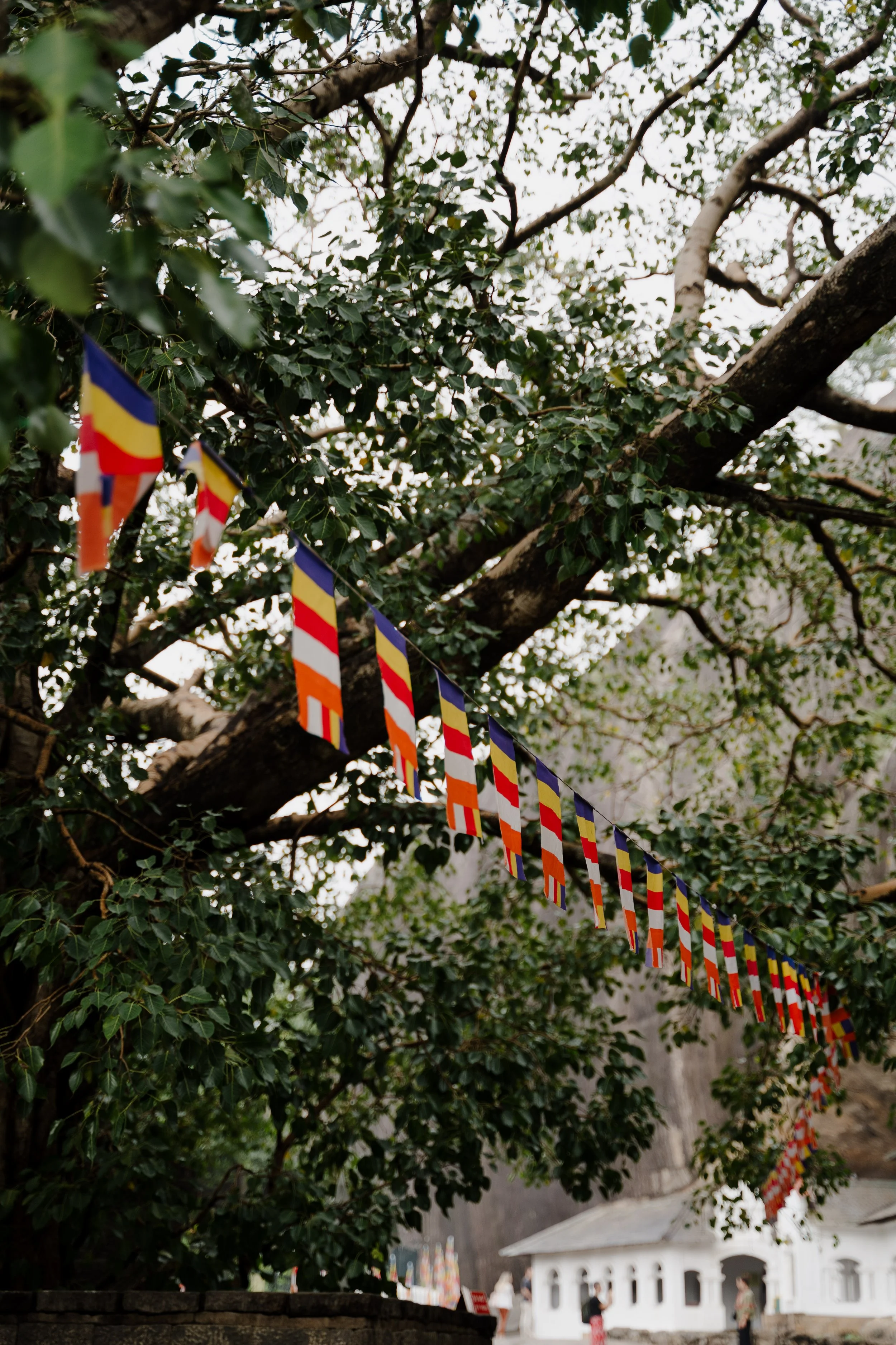 My birthday began on the road, travelling from Dambulla toward the hill country. The tour bus was appropriately decorated with balloons and banners, which immediately set the tone. Our first stop was the Cave Temples, where the learning gears really kicked in. We were introduced to the Buddhist flag and the meaning behind each of its colours, and our tour leader jokingly suggested there might be an end-of-tour test. Said lightly but taken seriously… curiosity sharpened, questions followed, and suddenly we were all leaning in like model students.